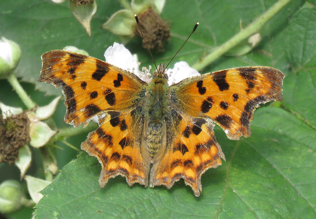 Seen during the Balsam pulling along the Emm in Area 3 this morning were Comma Polygonia c-album and Meadow Brown Maniola jurtina .