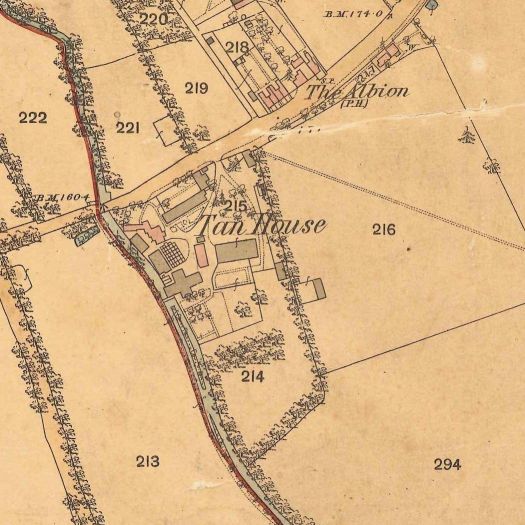 The second tannery was situated just off the Barkham Road at what is now Tanhouse Lane. It is believed that it was originally owned by James Twycross. This extract from the 1871 OS map clearly shows what a large site this was.